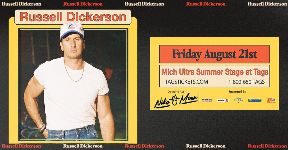 HUGE Announcement from TAG’S SUMMER STAGE! Russell Dickerson will be at the Mich Ultra Summer Stage at Tags on Friday, August 21st! Tickets go on sales this Friday, March 6th but you can WIN tickets before you buy them with Wiggle 100!